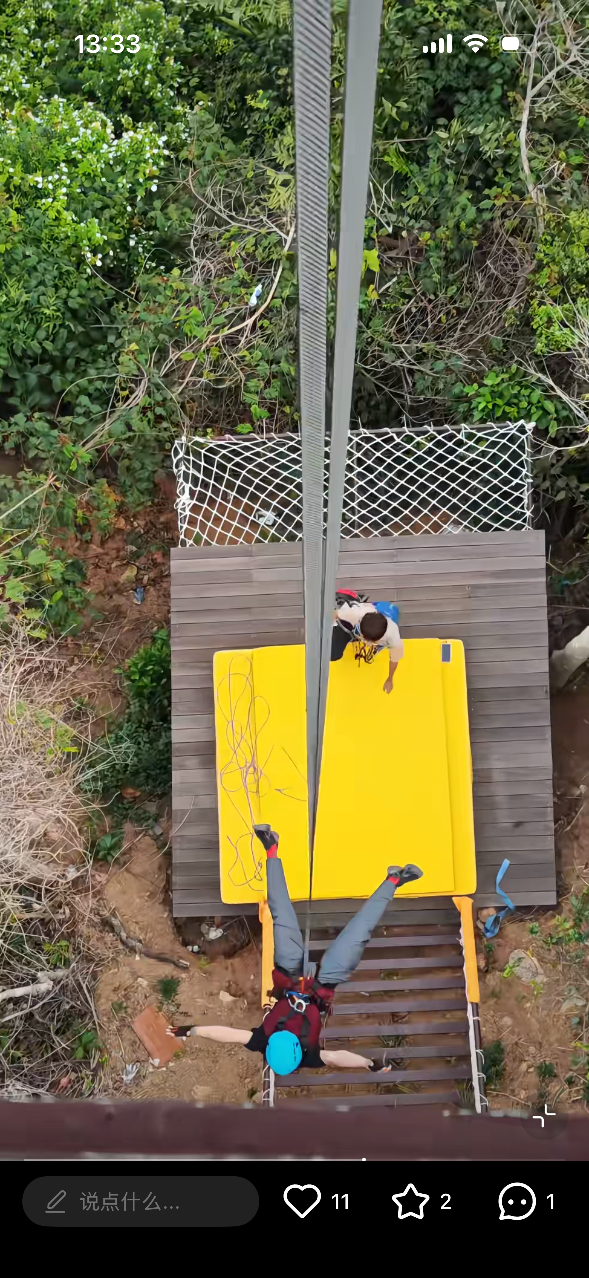 他满心期待地参与,但意外却发生了。王先生提供的视频显示,当时在一处蹦极台的位置,他从高处跳跃向下,但安全绳迅速地滑落,而此时,他张开双臂双腿,下降持续了几秒钟。即将降至地面时,其双腿弯曲接触到保护垫,身体却向后倾斜。工作人员见状,立即去抓安全绳,想将他拉至保护垫上,但最终,王先生还是跌坐在保护垫范围外的铁质楼梯上。